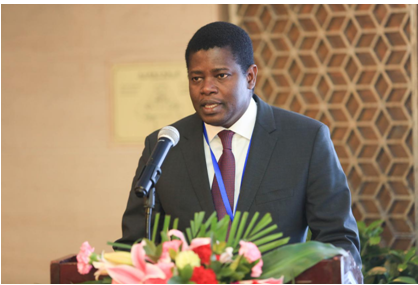Mankeur Ndiaye, Ambassador of the Republic of Senegal to China delivers an address