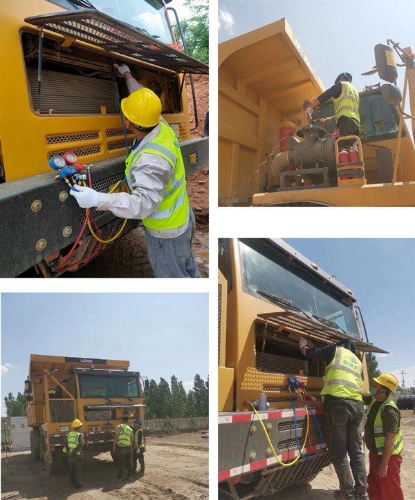 随着气温升高,空调进入运行高峰期。完美电竞重机服务人员顶着烈日奋斗在市场一线,本着“一检查、二补充、三培训”的原则,针对空调系统免费进行全面检查。通过服务人员的努力,将空调故障率控制在最低,极大改善驾驶员操作环境,提高驾驶员的工作舒适度。