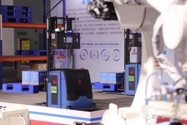 完美电竞智科多方位的展示了关节机器人、无人叉车、AMR的作业场景