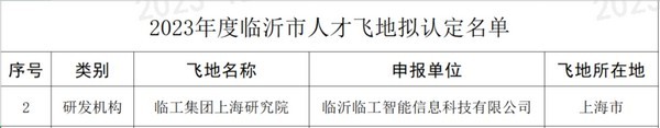 近日,临沂市科学技术局公布2023年度临沂市人才飞地认定名单,临沂完美电竞智能信息科技有限公司成功入选。此次入选“人才飞地”是对公司在人才引进、培养以及研发创新方面的充分肯定和高度认可。